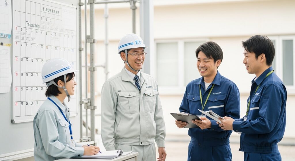 有給を取りやすくしている建設会社には、共通する考え方があります。それは、「休みを取るのは個人のわがままではなく、長く働いてもらうための投資」という発想です。具体的には、現場ごとにサブ担当を配置する、工程に余裕を持たせる、繁忙期以外は計画的に休暇取得を促す、といった取り組みが見られます。